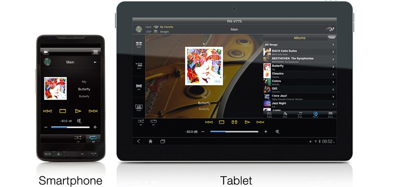 Aplicatia AV Controller App este disponibila pentru a fi instalata pe smartphone sau tableta si permite controlul diverselor functii ale receiverului si ofera acces la serviciile de streaming.