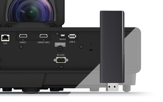 Cu aceste proiectoare laser 4K PRO-UHD pentru distanțe ultrascurte, este ușor să redați în flux concerte, spectacole, filme și alt tip de conținut, prin introducerea și păstrarea unui dispozitiv (precum un stick de redare în flux Amazon Fire TV și Roku) în portul frontal ascuns. În mod alternativ, utilizatorii pot viziona conținut de pe playere DVD, decodoare TV, console de jocuri, folosind unul dintre cele trei porturi HDMI ale proiectorului. De asemenea, modelul este livrat cu două difuzoare integrate de 10 W și cu o conexiune HDMI ARC pentru asocierea la o configurație audio-video.